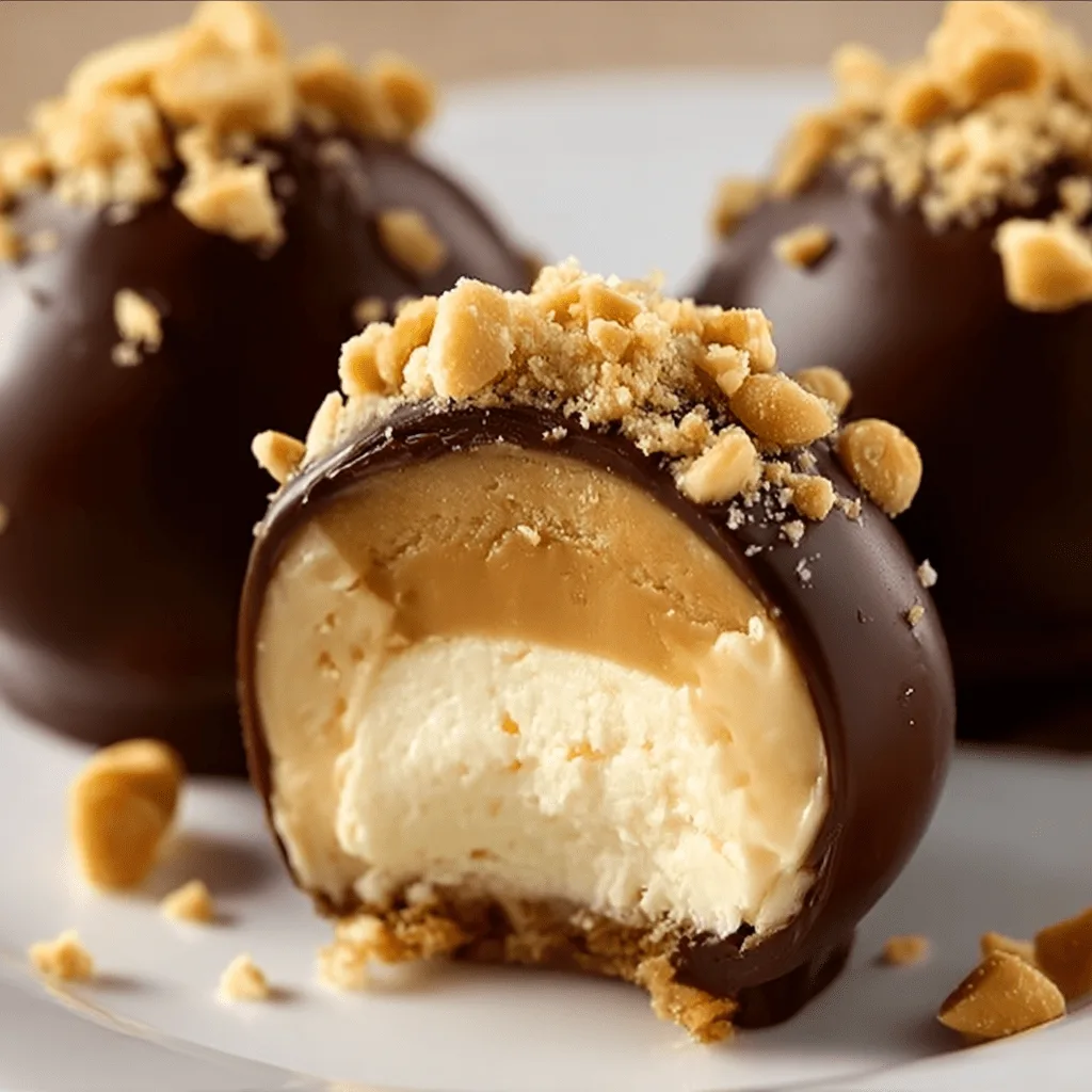 nights in. These bite-sized treats combine the rich, creamy flavor of cheesecake with the nutty goodness of peanut butter, all wrapped in a smooth chocolate shell. Since they’re no-bake, there’s no need to turn on the oven—making them an ideal year-round option, especially during hot summer months 😋.