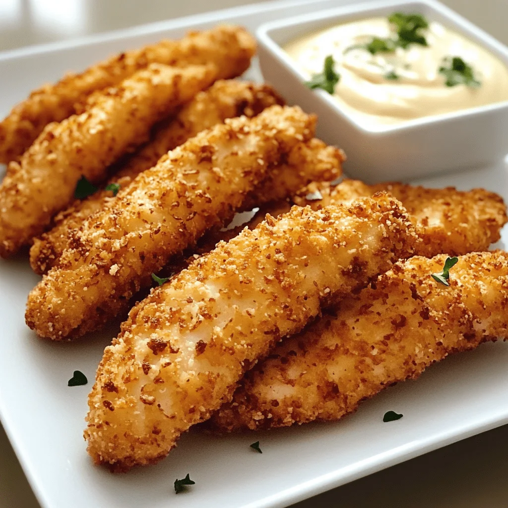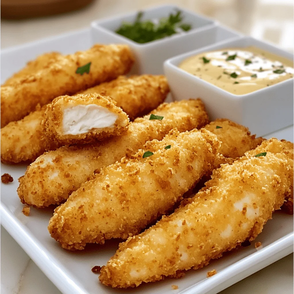 Chicken: The foundation of the dish, chicken strips provide lean protein and a tender texture. Choosing boneless, skinless cuts ensures fast cooking and easy coating. The shape of the strips also increases surface area, making room for more crispy crust.