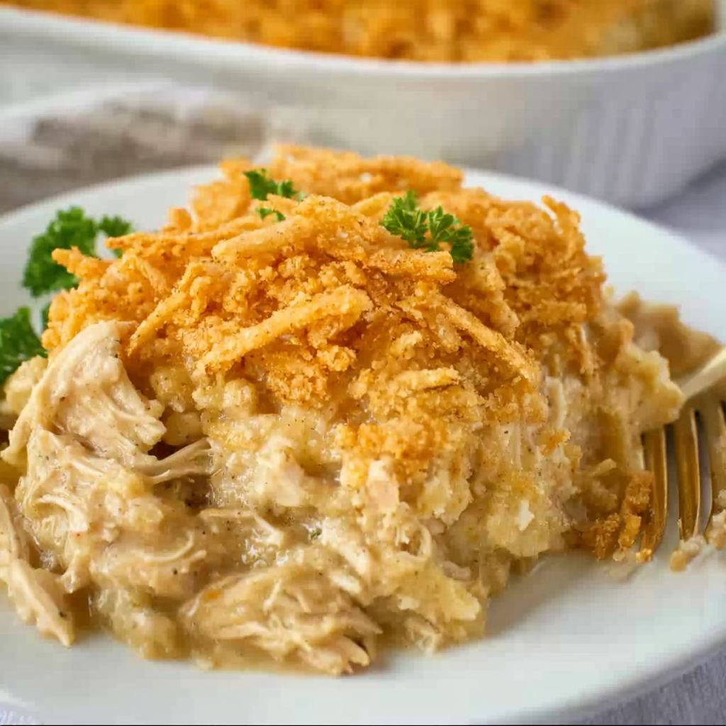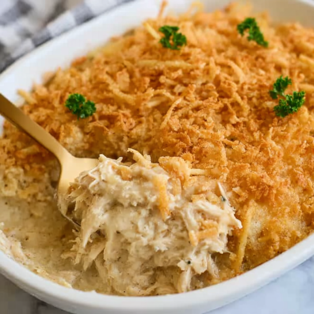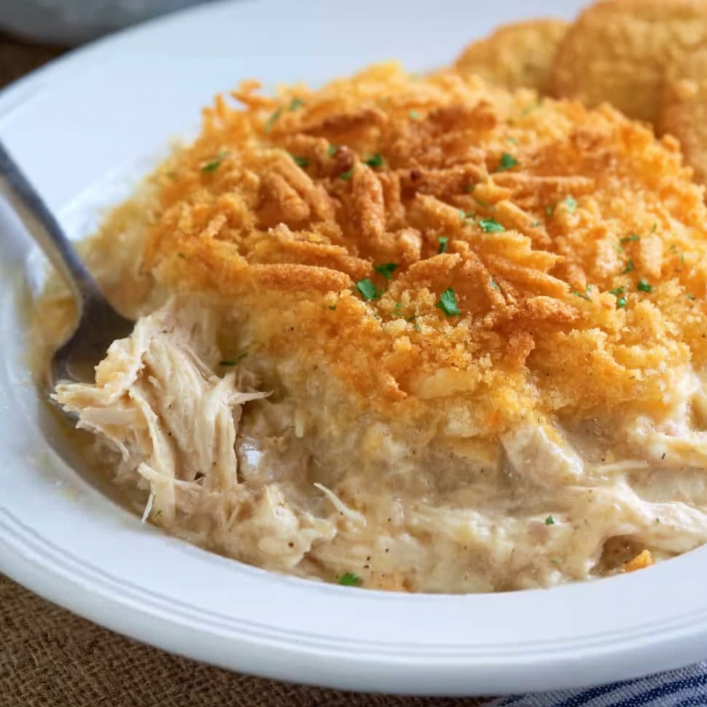 This recipe has roots in classic American home cooking—simple ingredients, minimal prep, and maximum flavor. Many families grew up with some version of a creamy chicken casserole topped with buttery crackers. This version keeps that nostalgic charm while making it easy enough for modern schedules. It’s the kind of recipe you’ll turn to again and again because it’s dependable, satisfying, and loved by both kids and adults.