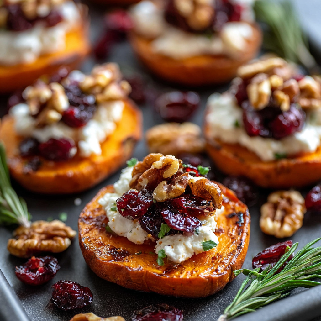 Together, these ingredients create a balanced appetizer that feels indulgent but supports wellness. From the anti-inflammatory properties of cranberries and walnuts to the vitamin-packed sweet potatoes and protein-rich goat cheese, this recipe proves that healthy food can also be elegant and satisfying.