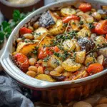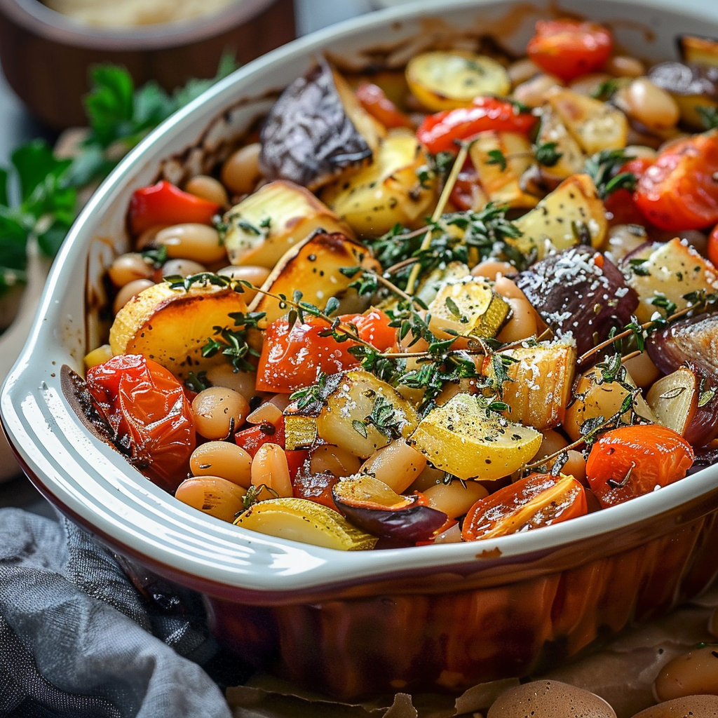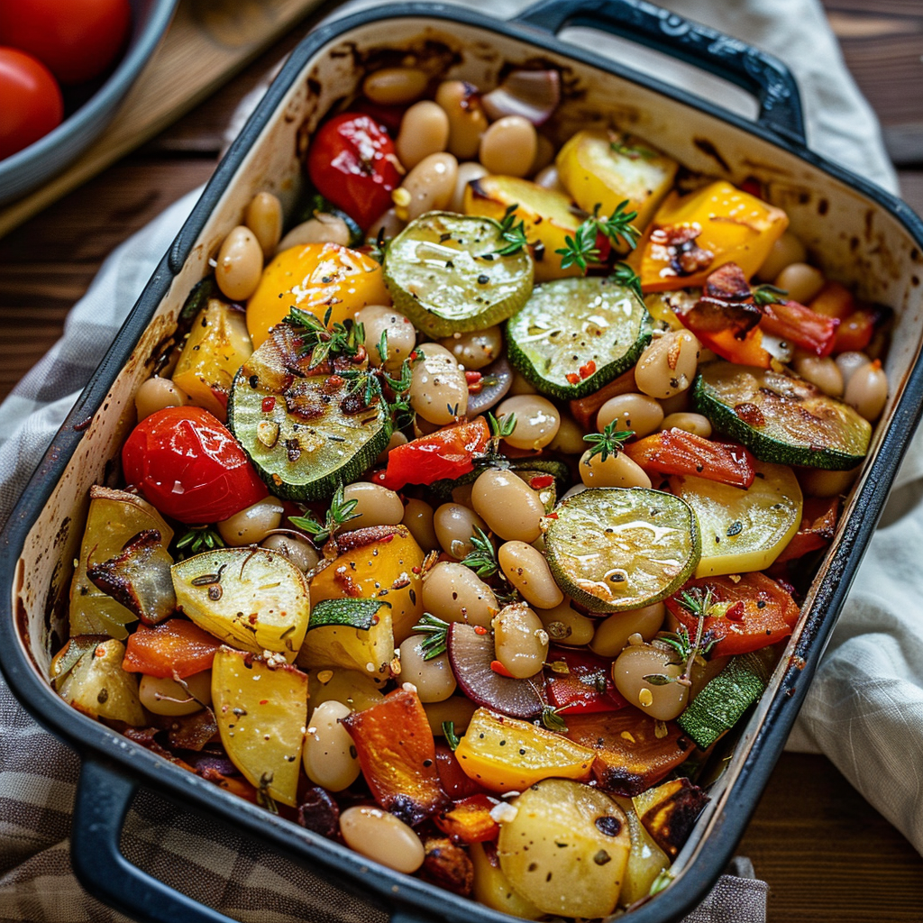The Easy Roasted Vegetable and Cannellini Bean Bake is a hearty, one-dish wonder that brings together colorful roasted vegetables, creamy cannellini beans, and aromatic herbs in a Mediterranean-inspired recipe. Perfect for busy weeknights or meatless meals, this dish is simple to prepare, packed with nutrition, and endlessly adaptable. Whether served as a main course or a side, it’s a wholesome addition to any table.