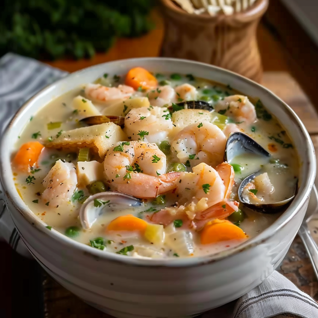 Seafood Chowder Creamy Comfort with Shrimp Fish and Corn
