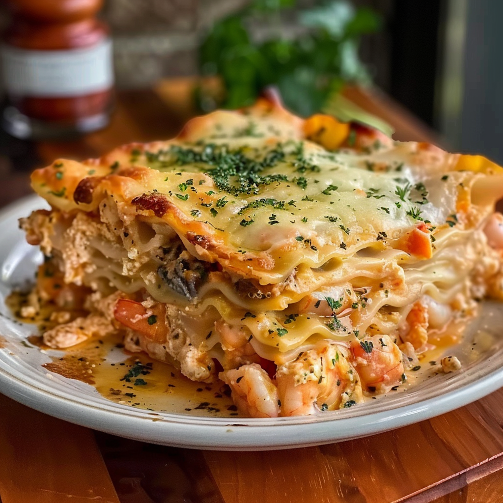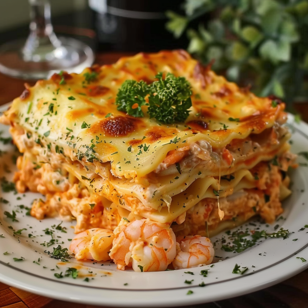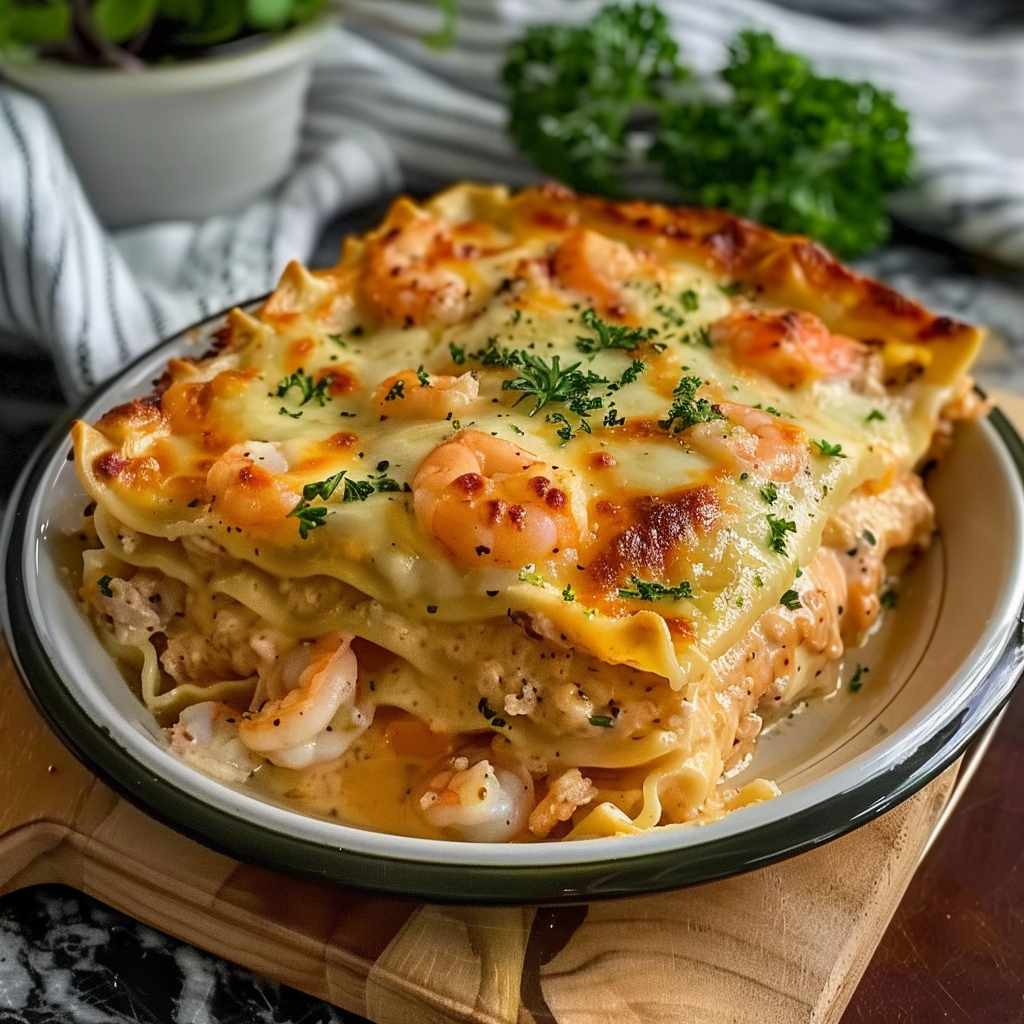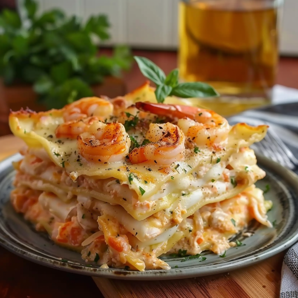 Seafood Lasagna with Shrimp and Crab Creamy Cheesy Layers