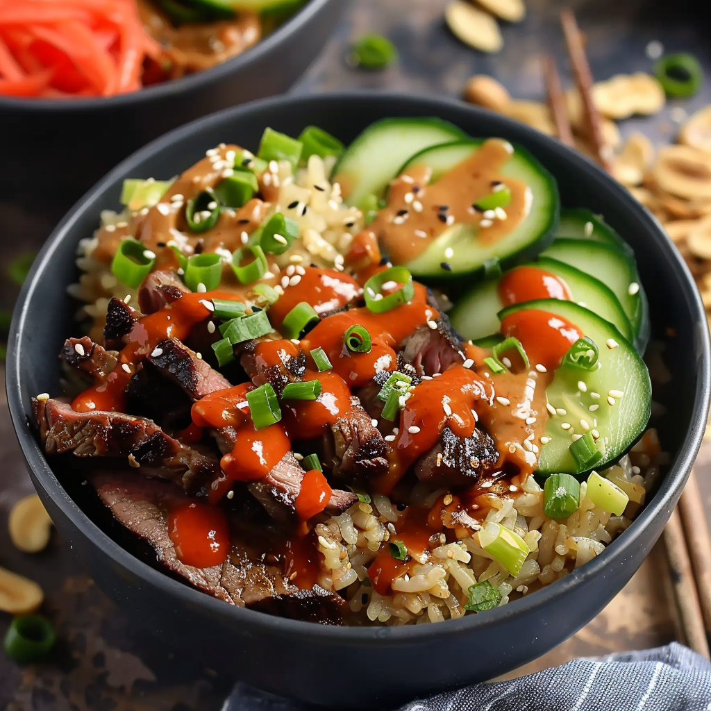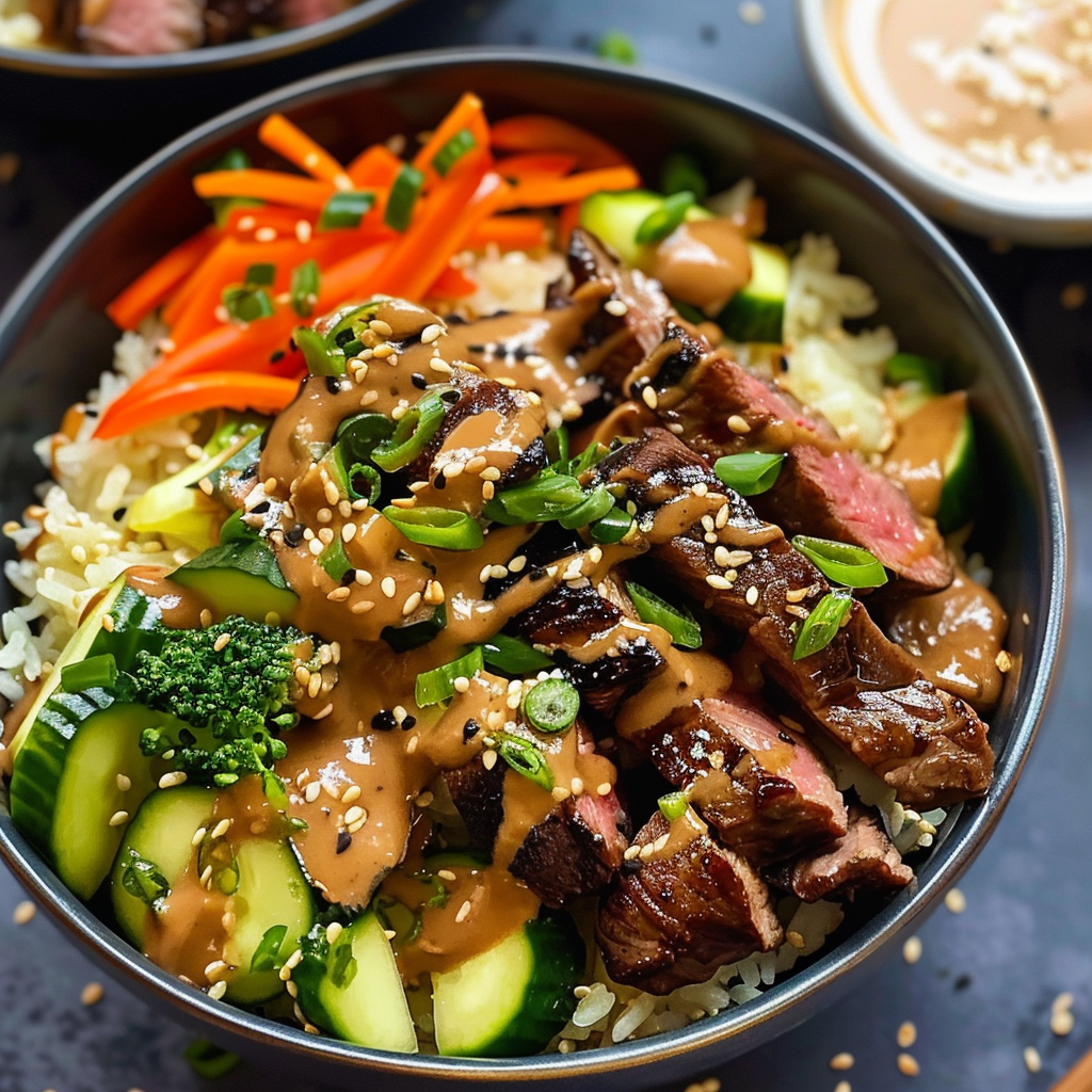 The foundation of the bowl. Rice soaks up juices from the steak and veggies and balances the sauce. For ideas on upgrading rice bases, check out fried rice bowl variations.