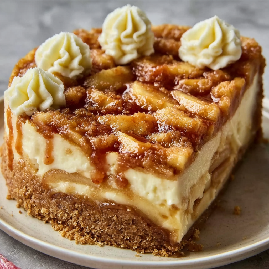Sugar Cookie Apple Cheesecake combines three layers of pure comfort: a chewy sugar cookie crust, rich vanilla cheesecake filling, and spiced apple topping. Baked together in one pan, this dessert is easy to make, beautifully layered, and perfect for fall and holiday gatherings.
