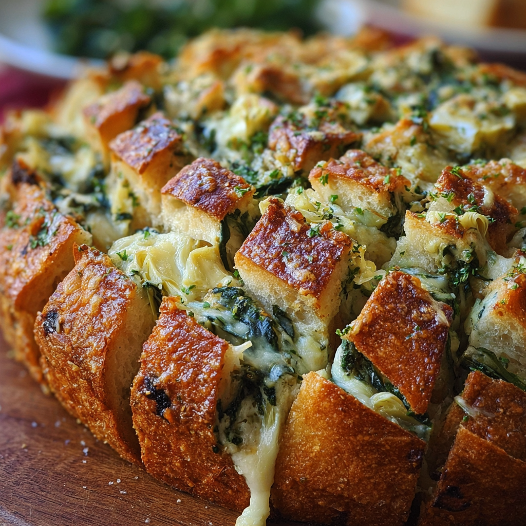 Spinach and artichoke dip has become one of the most iconic and requested appetizers at gatherings, restaurants, and parties for a reason—it’s rich, creamy, and loaded with flavor. The balance of tender spinach, briny artichoke hearts, and melted cheeses creates a savory, velvety spread that appeals to just about every palate. Its versatility means it can be served warm or cold, with bread, chips, or crackers, and now, stuffed into sourdough for an unforgettable pull-apart experience.