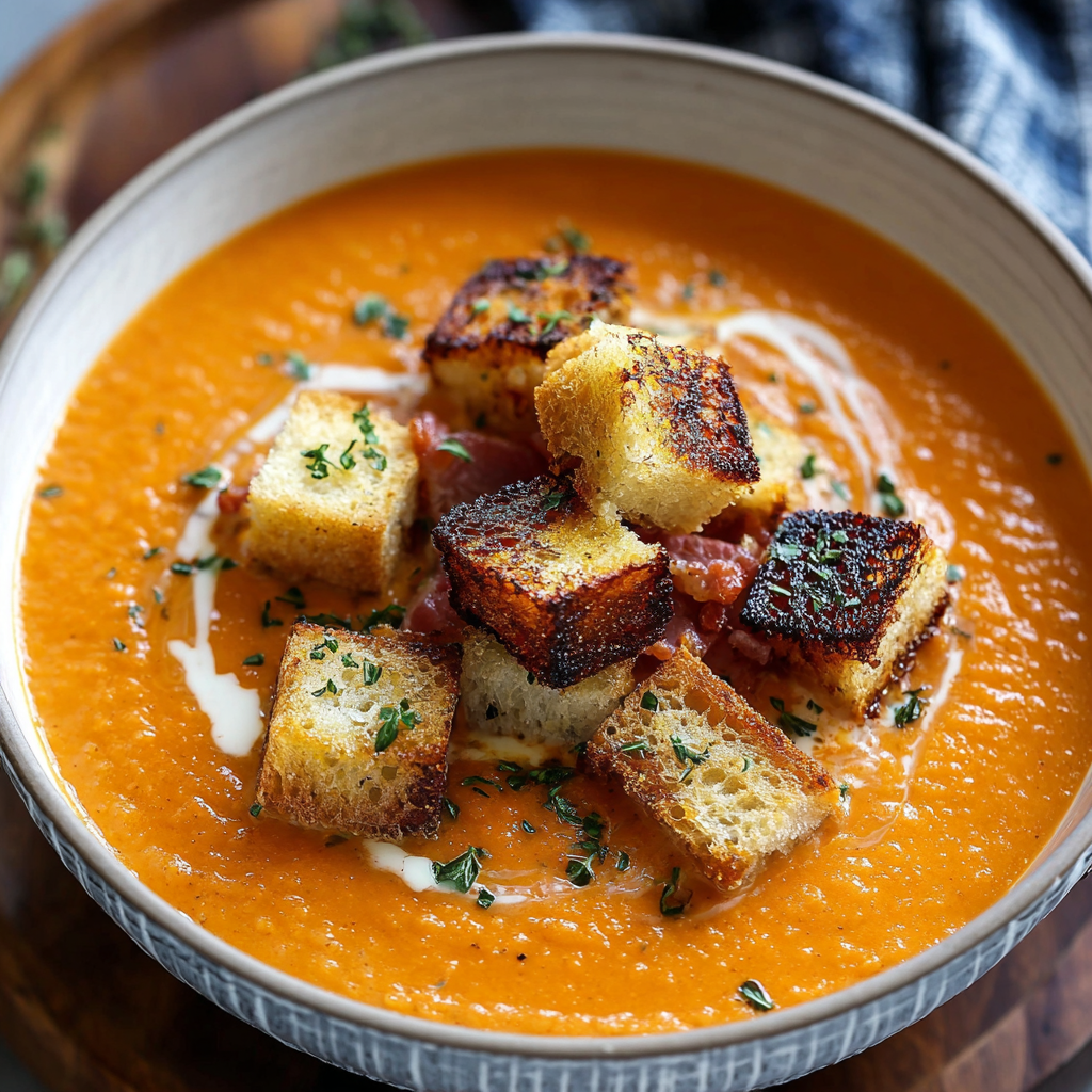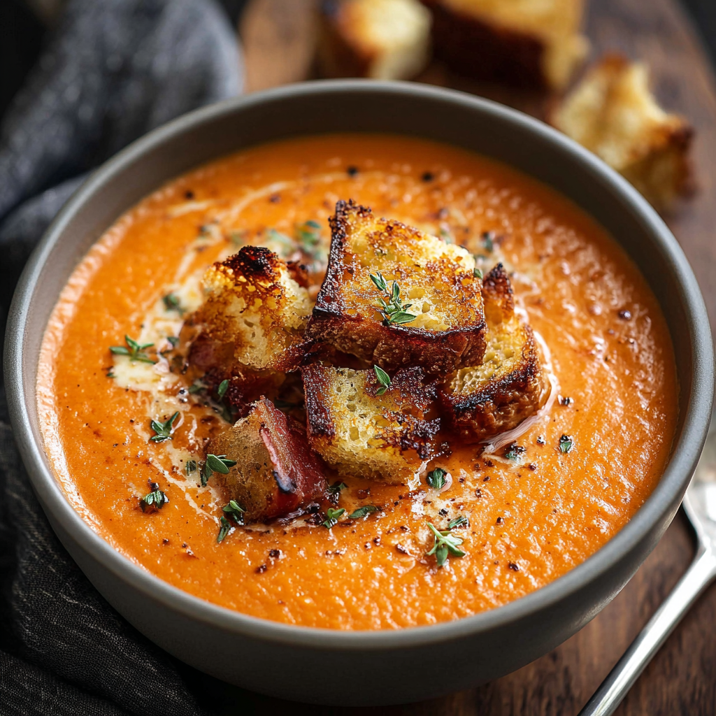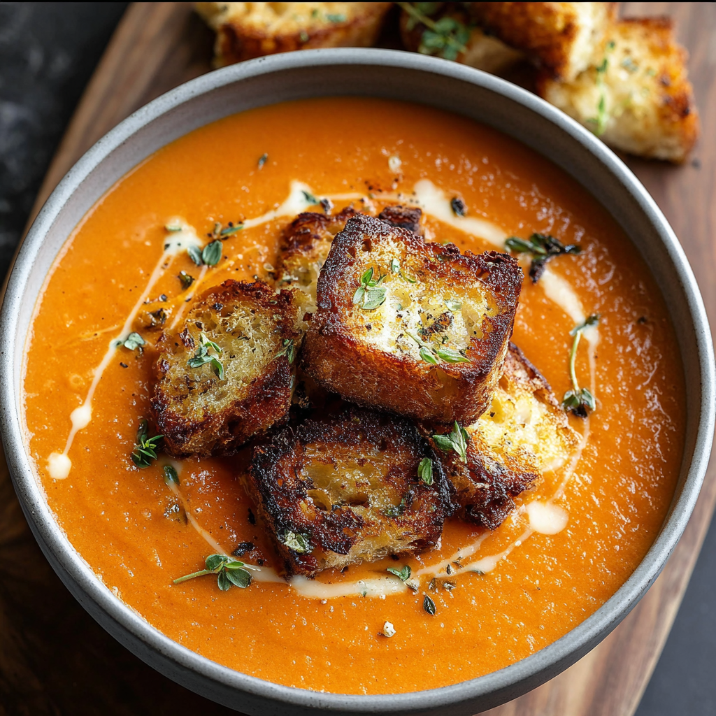 Creamy tomato soup crowned with grilled cheese croutons is more than just a cozy meal—it’s an elevated twist on a beloved classic. This comforting combination pairs the velvety texture of slow-simmered tomato soup with crispy, golden cubes of grilled cheese, creating a dish that’s both nostalgic and inventive. Whether you’re craving a warming lunch, a simple dinner, or a crowd-pleasing option for gatherings, this recipe delivers satisfaction in every spoonful.