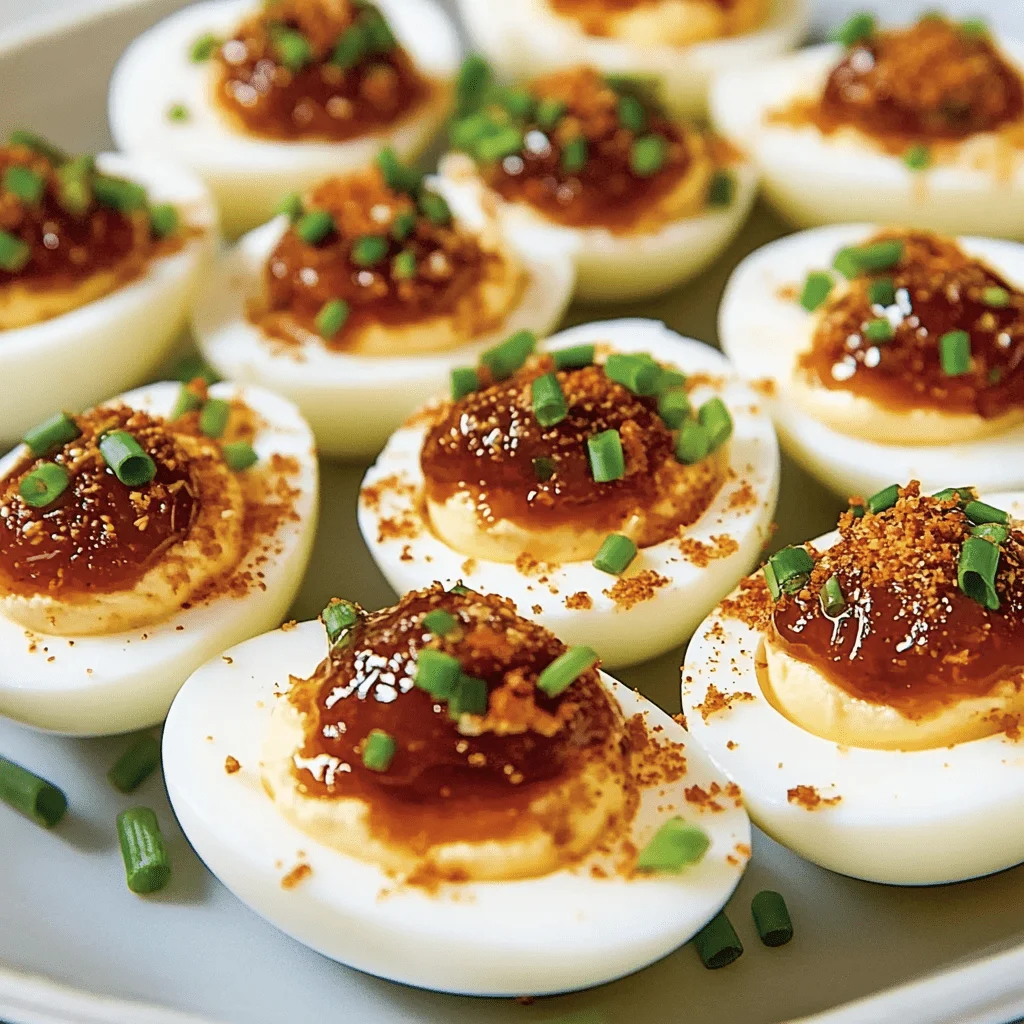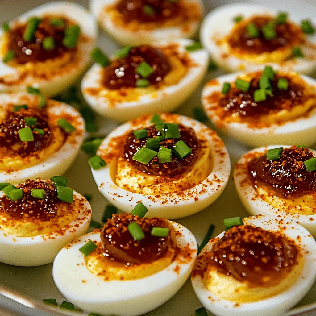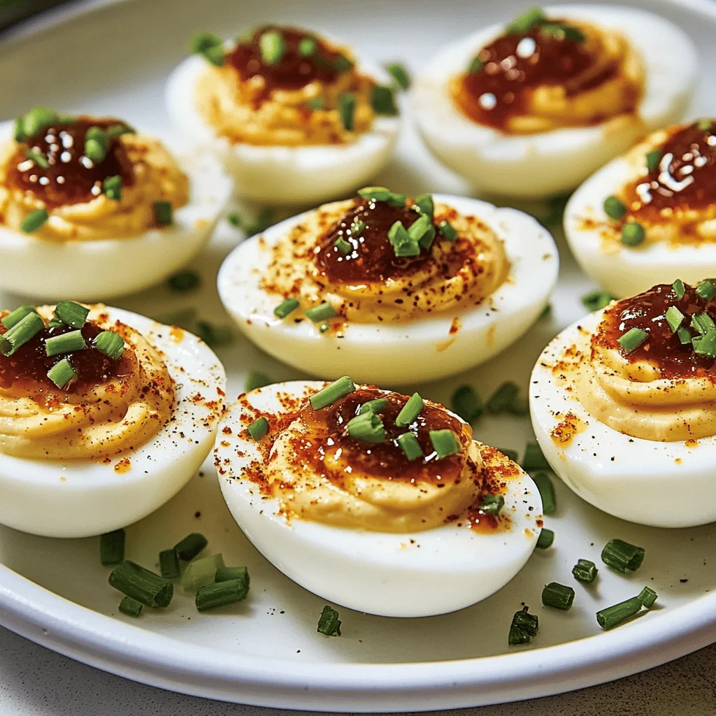 Top each egg with just a small amount of pepper jelly to highlight the main flavor. Sprinkle with chopped chives for freshness and color. A pinch of smoked paprika provides an optional smoky note that also enhances the visual contrast. For more on garnishing tips, this Pinterest board showcases creative egg presentations for every occasion.