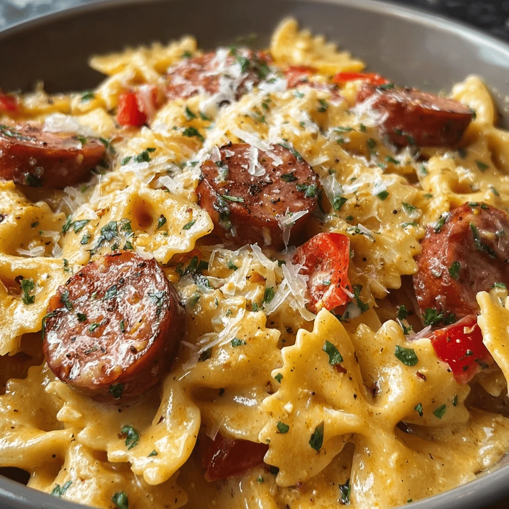 This Creamy One-Pot Smoked Sausage Pasta is the ultimate comfort food for busy weeknights. Made with smoky sausage, tender farfalle pasta, rich cream, and melty cheese—all in a single pot—this dish delivers hearty flavor with minimal cleanup. Perfect for families, meal prep, or anyone who craves a cozy, creamy dinner without the fuss.