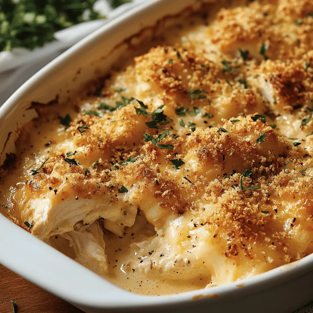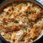 The result? A golden, crispy topping over creamy, savory chicken filling. This dish is ideal for potlucks, weeknight dinners, or even meal prep. It’s no wonder chicken casseroles like this continue to trend across Pinterest boards, with families always coming back for seconds.