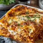 Ultimate cheesy layered lasagna is a hearty, oven-baked pasta dish featuring layers of tender noodles, rich meat sauce, creamy ricotta, and gooey mozzarella—all topped with golden Parmesan. Perfect for gatherings, holidays, or make-ahead meals, this comfort food classic delivers bold, balanced flavor in every slice. It’s easy to assemble, deeply satisfying, and even better the next day.