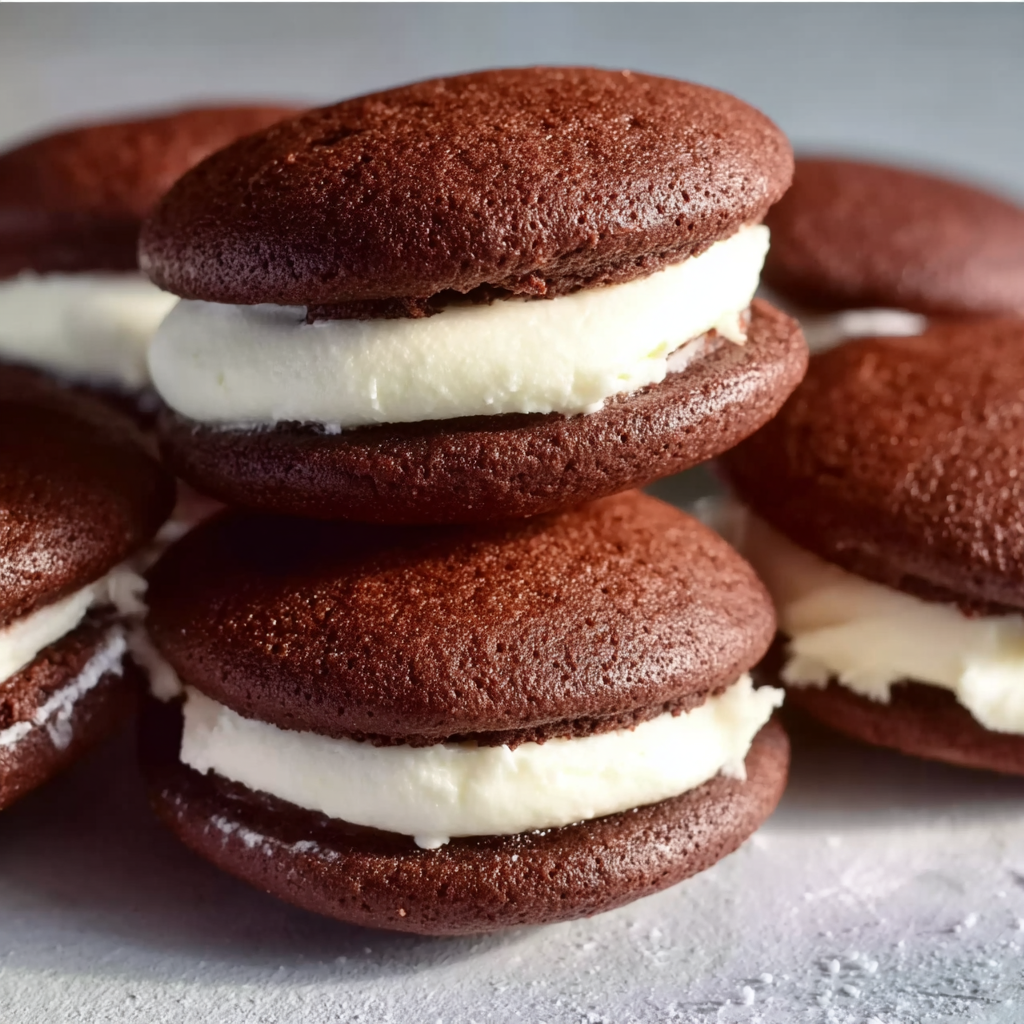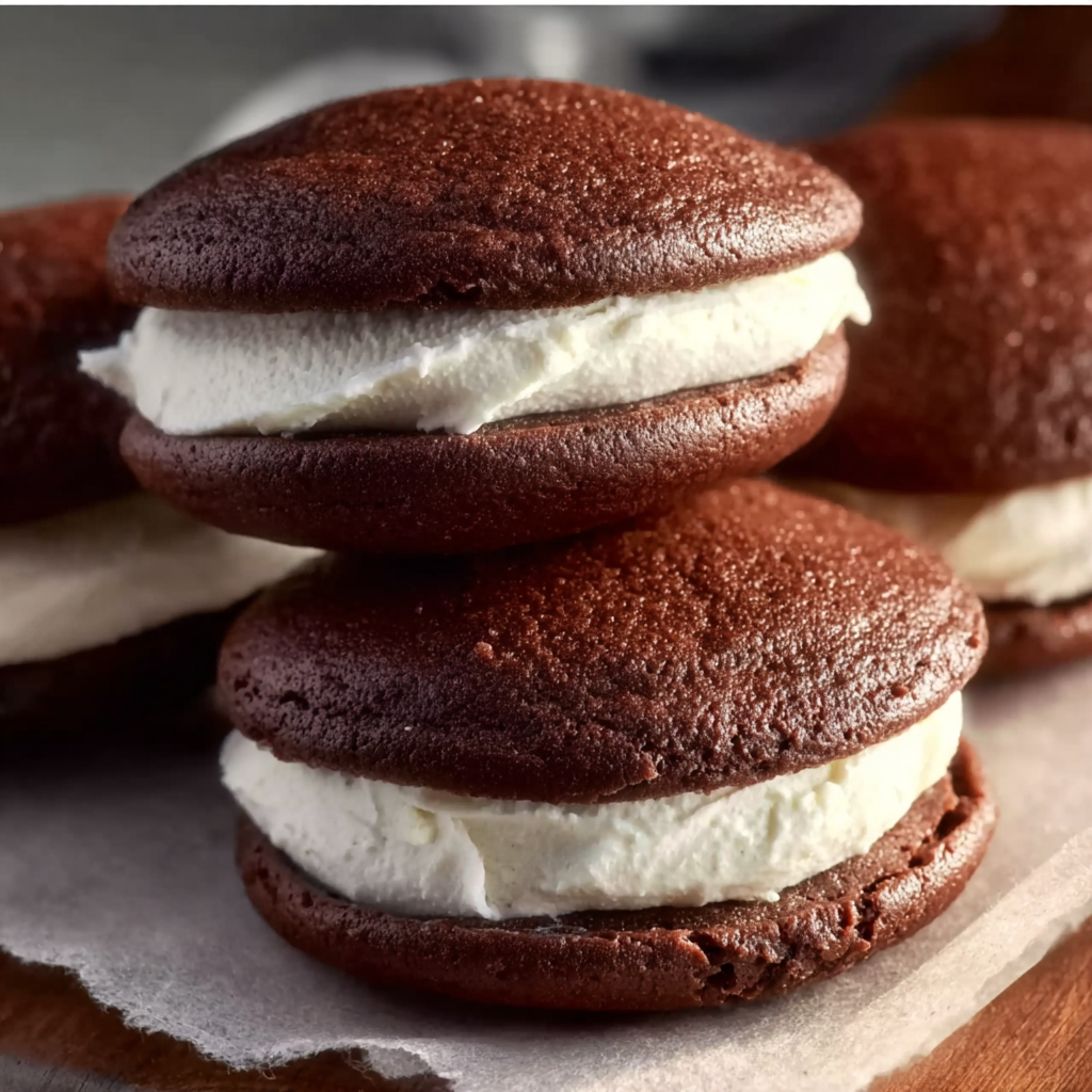 Soft, cake-like chocolate cookies sandwiched with a fluffy vanilla cream filling. These classic whoopie pies are rich, tender, and perfect for any occasion.