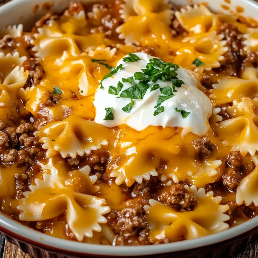 This Zesty Honey BBQ Beef Bowtie Bake is a savory and sweet casserole-style dish that combines tender beef, zesty BBQ sauce, and a touch of honey for a perfect balance of flavors. The bowtie pasta adds a fun texture, while the cheesy topping makes it all come together in a comforting, delicious bake.